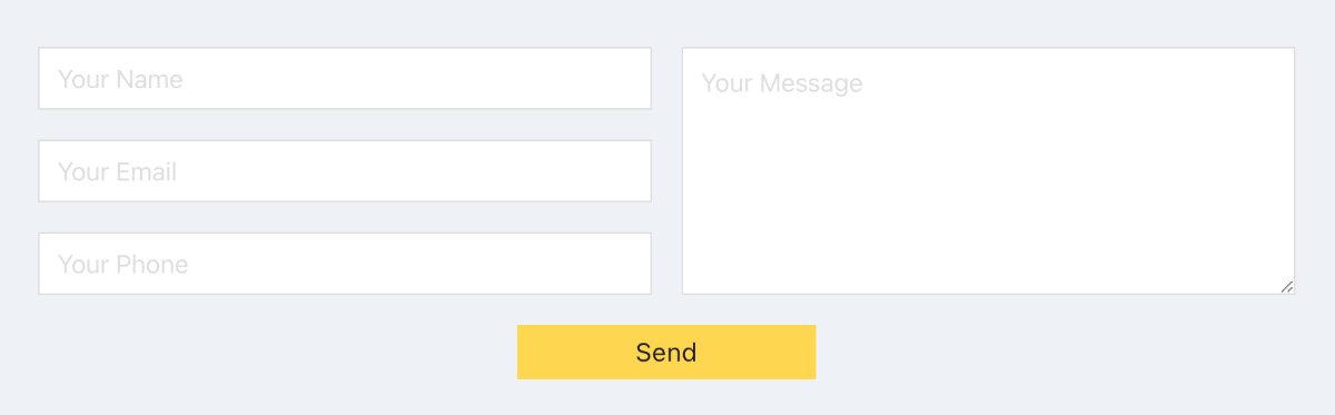 Uses CSS Grid to lay out the first 3 form fields (Name, Email and Phone) at the left and the…